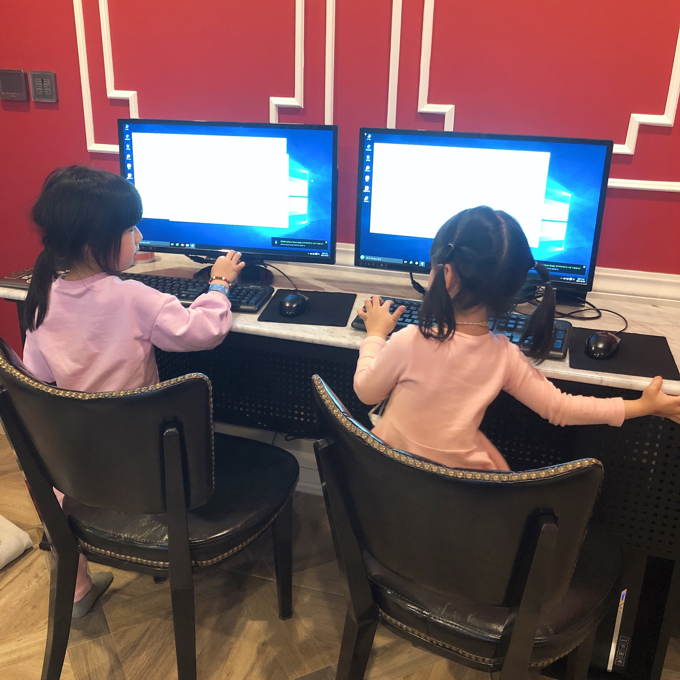 그리고 나름 유용했던 호텔 객실의 꿀템은 컴퓨터~ 요즘 내가 업무하려고 맥북을 꺼내면 아이들이 관심을 보이고 키보드를 눌러 보고 싶어하는데 마침 호텔부띠끄나인 객실에 PC가 두 대 있었다. 아이들에게 키보드와 마우스를 사용하는 방법을 가르쳐주려고 컴퓨터를 켰는데 아이들이 생각보다 컴퓨터를 정말 빨리 배웠다.