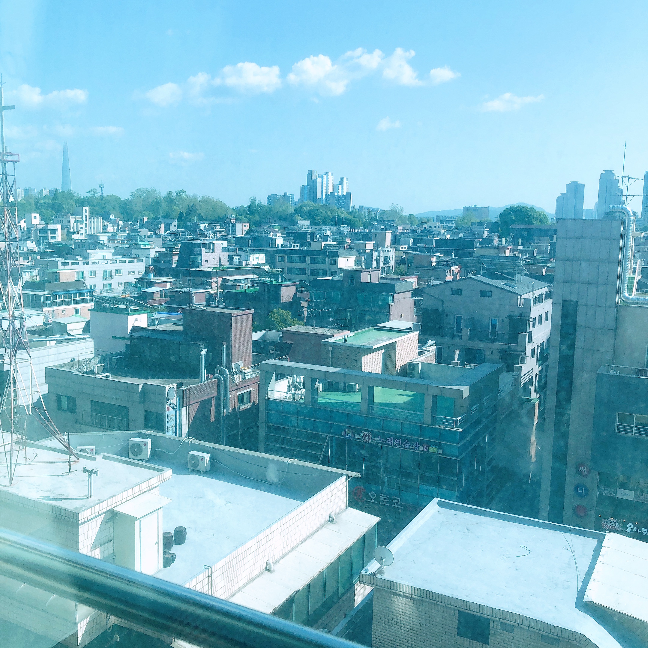 우리가 묵은 객실은 시티뷰였는데 군자역에서 호텔부띠크나인 건물이 꽤 높은 편이라 다른 건물들의 옥상이 보인다. 2박 3일동안 6층에서 지냈는데 전망이 그리 좋은편은 아닌 것 같다. 하지만 창이 비교적 낮고 큰 편이라 햇빛도 잘 들고 하늘도 실컷 볼 수 있어 좋았다. 창문을 열면 환기도 쉽게 할 수 있다.