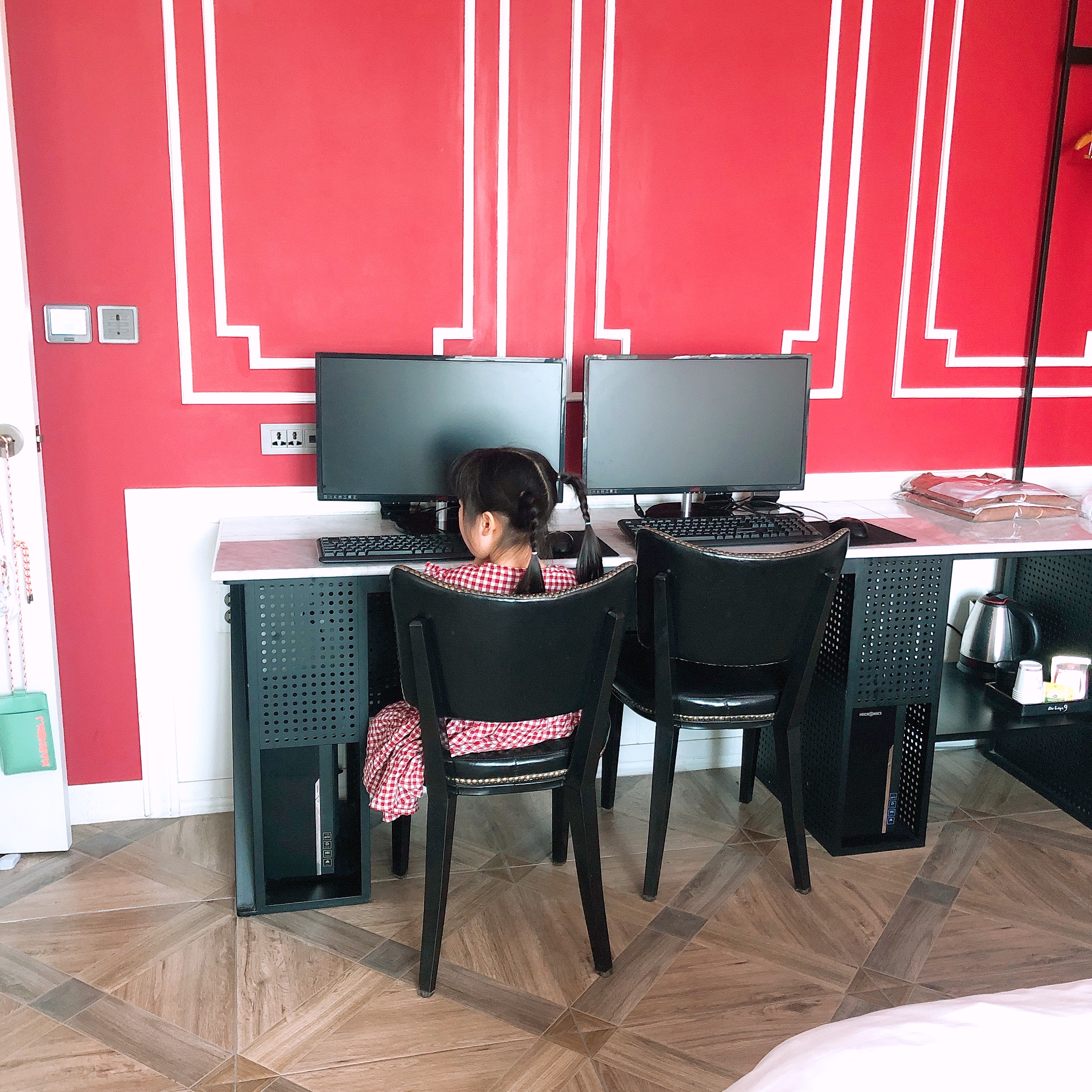 그리고 나름 유용했던 호텔 객실의 꿀템은 컴퓨터~ 요즘 내가 업무하려고 맥북을 꺼내면 아이들이 관심을 보이고 키보드를 눌러 보고 싶어하는데 마침 호텔부띠끄나인 객실에 PC가 두 대 있었다. 아이들에게 키보드와 마우스를 사용하는 방법을 가르쳐주려고 컴퓨터를 켰는데 아이들이 생각보다 컴퓨터를 정말 빨리 배웠다.