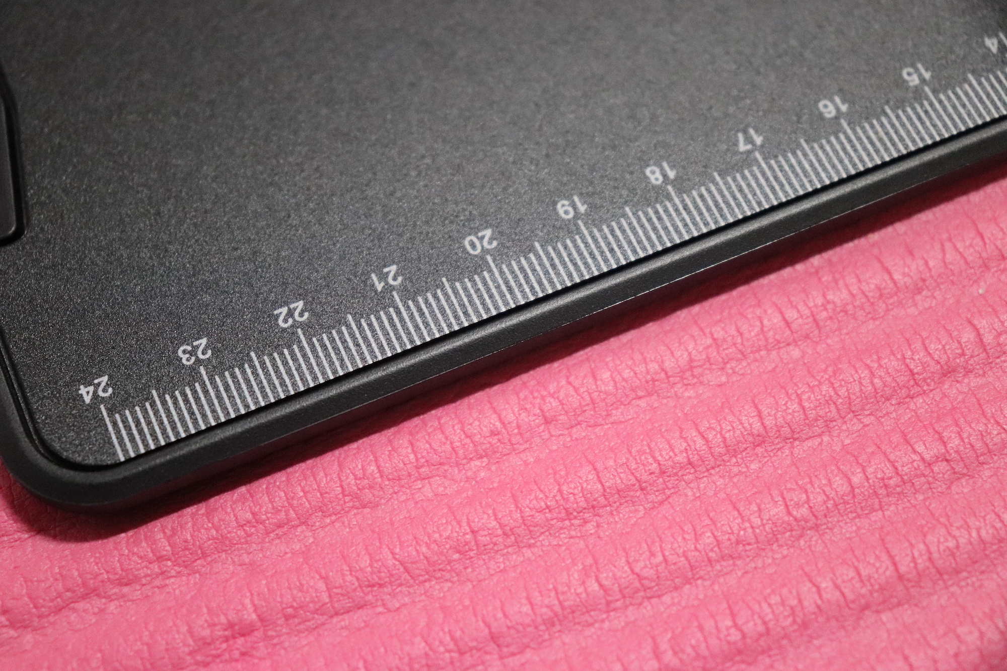 보드 아래쪽에는 전용펜이 꽂혀 있는데 아래로 당겨서 분리할 수 있다. 또 세로면을 따라서 24cm까지 눈금이 표시되어 있어 길이를 잴 때도 유용하다. 나는 카멜 보드 뒷면을 보고 마우스패드로 사용하면 딱일 것 같다는 생각을 했는데, 아이들 글씨 or 그림 연습 뿐만 아니라 내가 업무 볼 때에도 효율적인 사용이 가능할 것 같다는 생각이 들었다. (얘들아, 엄마가 너희들의 카멜 보드를 탐내고 있어+_+)