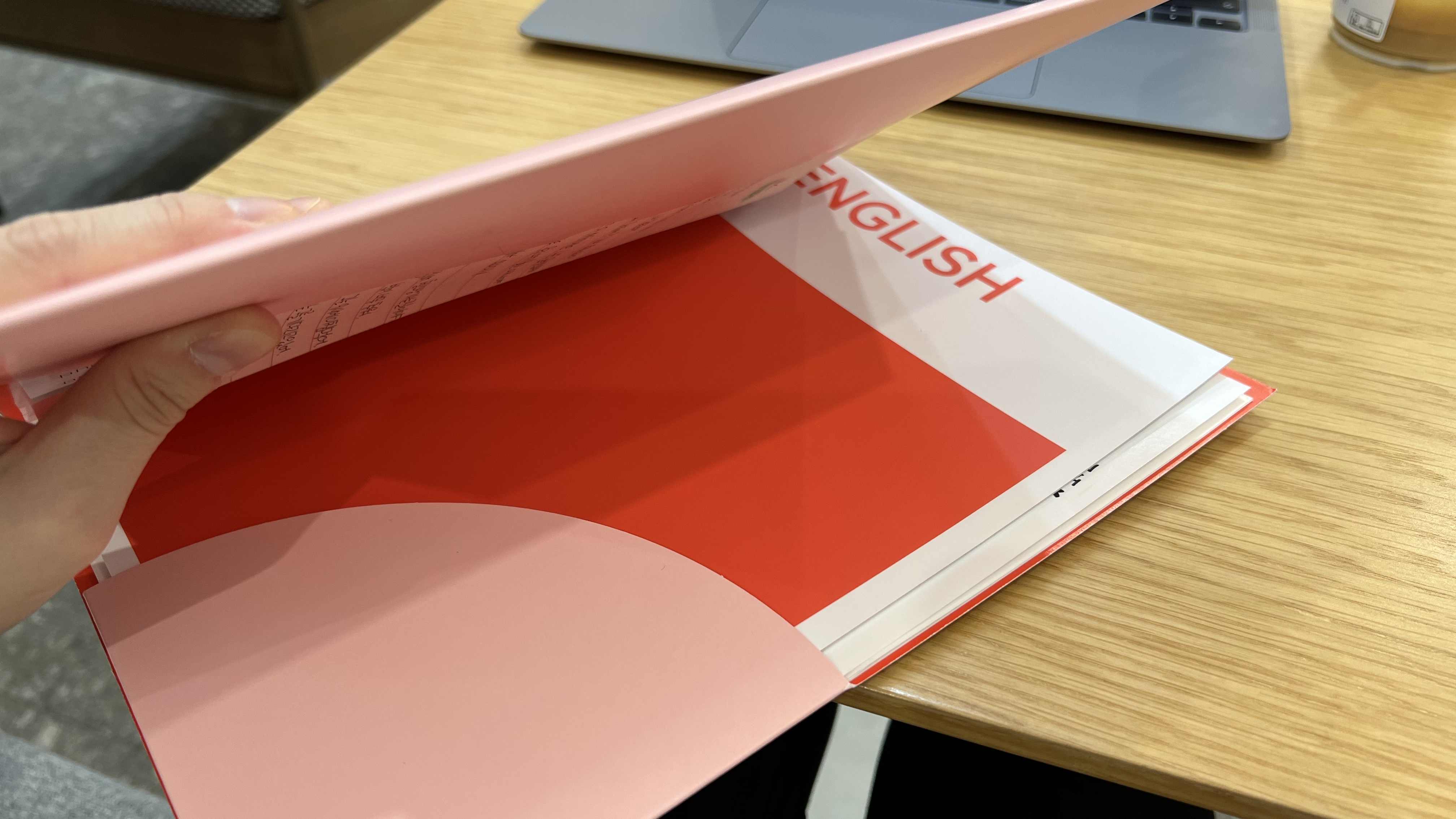 암튼 그래서 가벼운 영어 학습지를 휴대해 보기로 했다. 백수라서 어디 들고 다닐 기회가 없었는데 모처럼 직장인 흉내...! 가벼운 학습지 주문할 때 함께 들어있던 굿즈 파일에 교재, 메모패드, 진도표를 꽂아서 가지고 갔더니 얇고 가볍고 마음에 쏙 들었다. 취업을 하면 이렇게 가지고 다니면서 시간날 때 공부할 수 있어서 유용할 듯 하다.