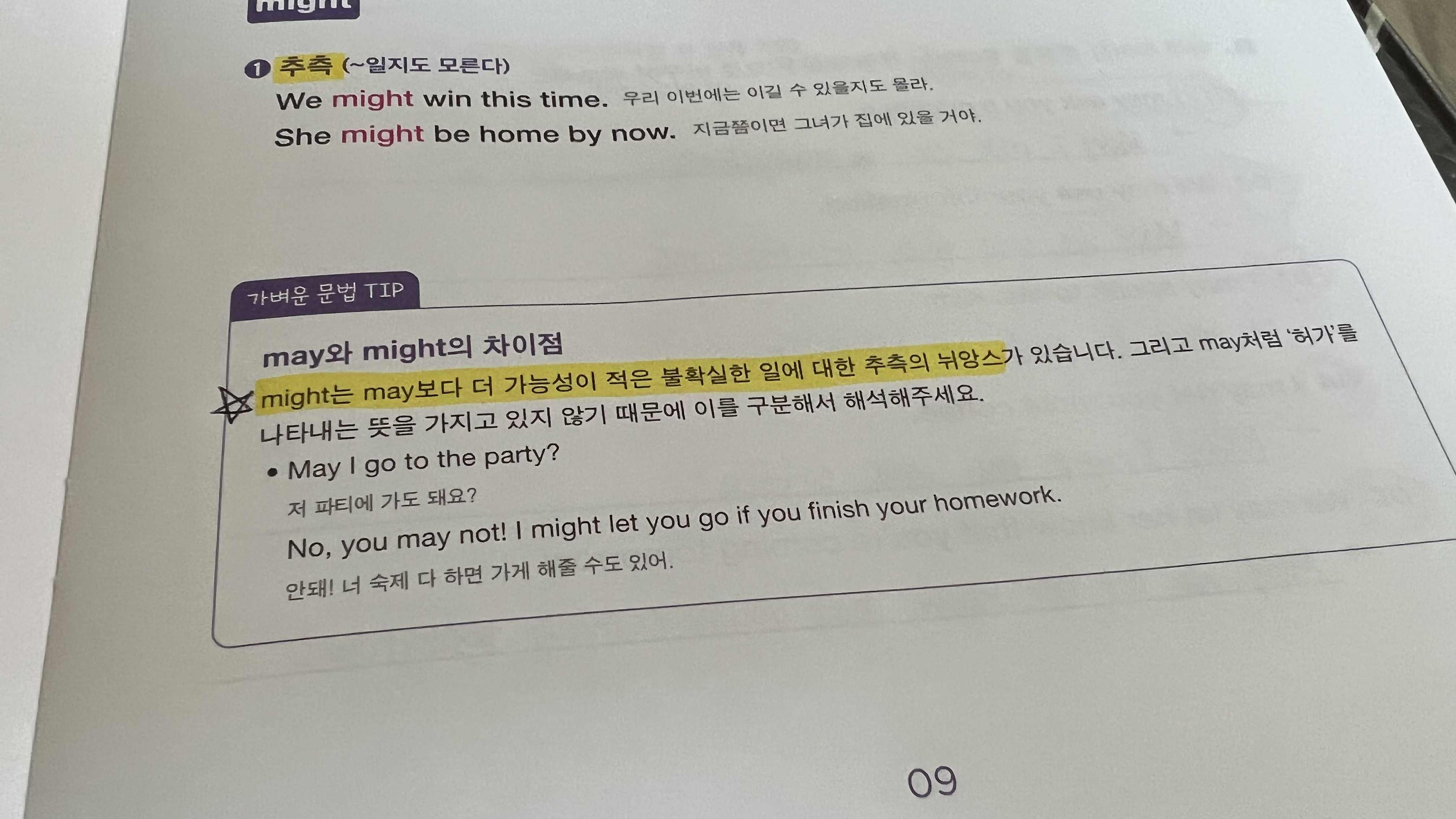 may, might도 학교다닐 때 분명히 배웠던 건데 기억이 가물가물 =_= 그리고 내가 알고 있던 '추측' 외에도 '허가, 요청' 등 다양한 의미로 사용된다는 사실도 새롭게 알 수 있었다.