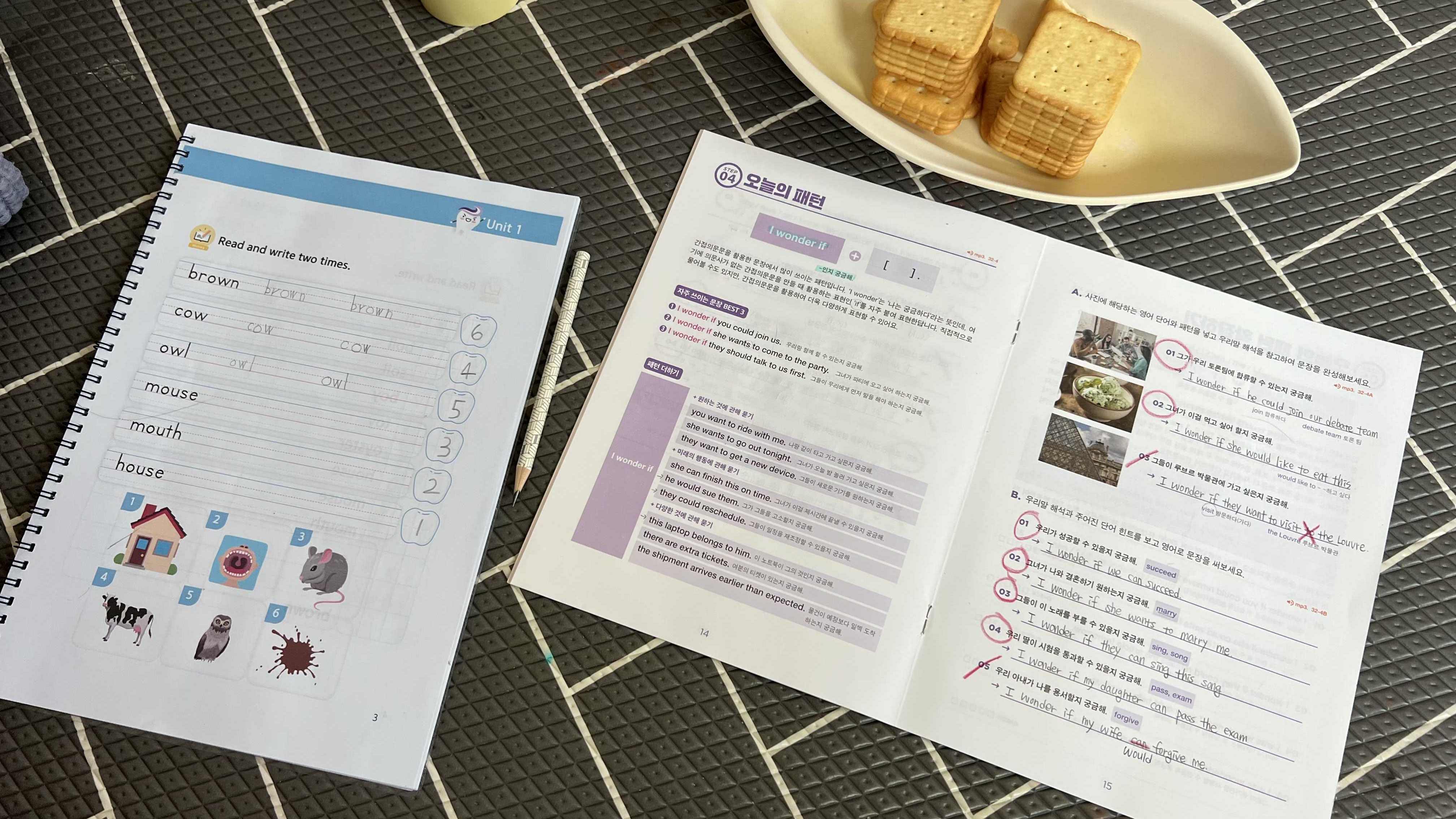 그리고 I wonder if 를 과거진행형으로 바꾸어서 I was wondering if ~ 라고도 말할 수 있다고 하는데 "궁금해하고 있었어." 라는 표현이 되어서 현재형과 거의 똑같은 의미로 사용되는 것 같다. 우리가 대화할 때도 같은 의미의 말을 여러가지 단어와 문장으로 표현할 수 있듯이 영어도 당연히 그럴텐데, 가벼운 학습지에서는 이렇게 다양한 문법들을 많이 소개해 주어 마음에 든다. 문제를 풀면서 패턴과 익숙해지고 마무리까지 확실하게~ 즐겁고 뿌듯한 시간이었다.