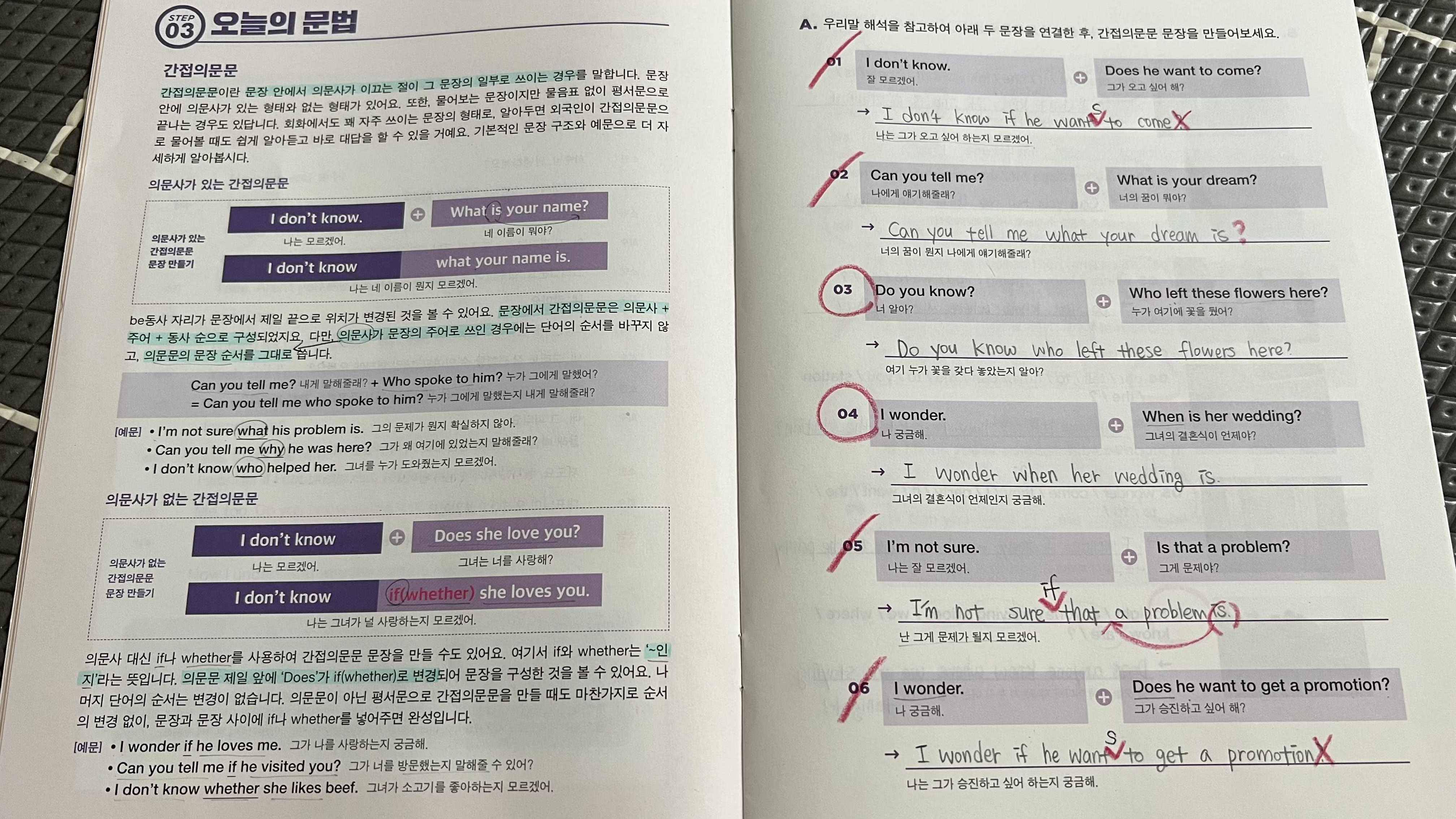간접의문문을 활용한 문장에서 많이 쓰이는 패턴인 I wonder if 표현도 배웠다.