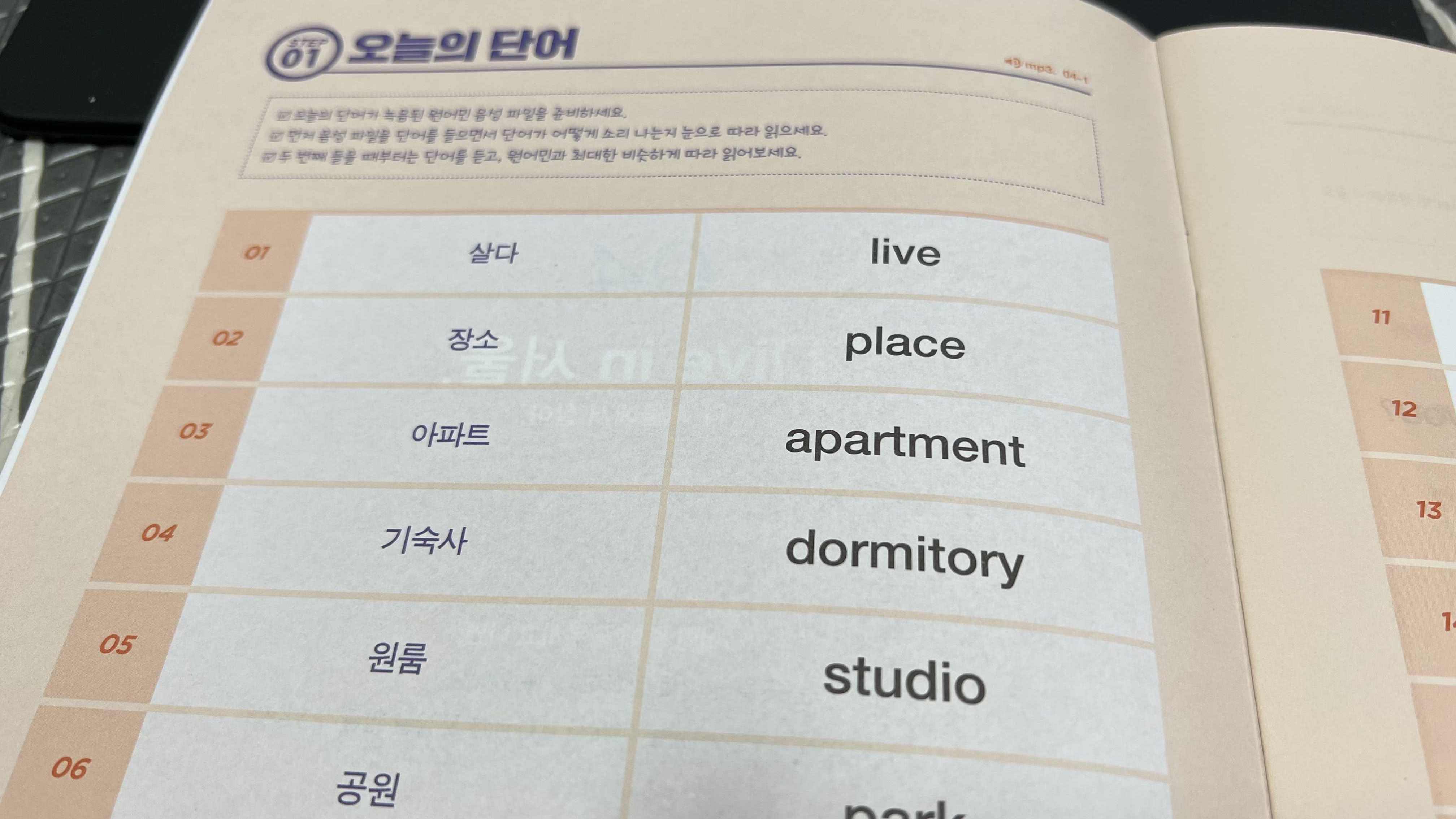 제공되는 강의 두 개는 항상 같은 패턴을 보인다. 먼저 박예지 선생님의 강의는 오늘의 문법, 오늘의 패턴을 설명하는 강의이고, Annabell 선생님의 강의는 오늘의 단어를 하나씩 발음해주고 예문을 익혀보는 강의이다. 교재의 구성상 오늘의 단어가 먼저 나오기 때문에 나는 강의 중에서 Annabell 선생님의 강의를 먼저 듣는 편이다.