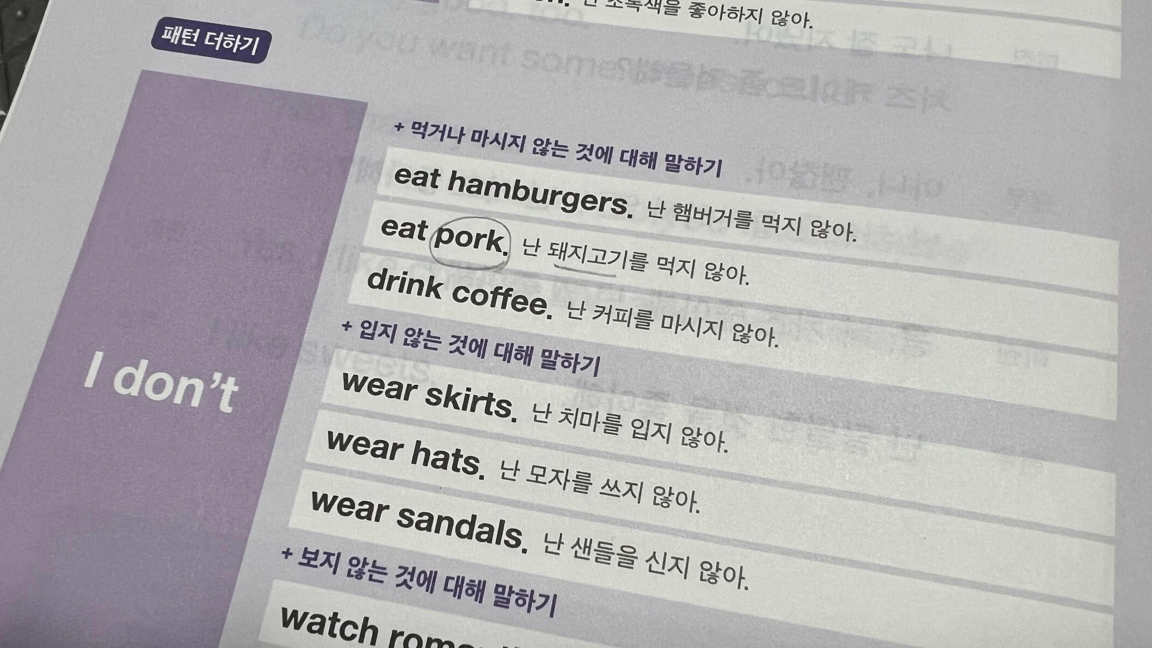 문법 공부를 하기 전에 가볍게 체크하고 넘어가는 오늘의 단어! 강의를 들으며 하나씩 따라하다보면 새로운 표현도 알게 되고, 자연스럽게 단어도 암기하게 되는 것 같다. 이번 주차는 먹거나 마시지 않는 것에 대해 말하는 응용 패턴이 있어서 유독 음식과 관련된 단어가 많이 보였다.