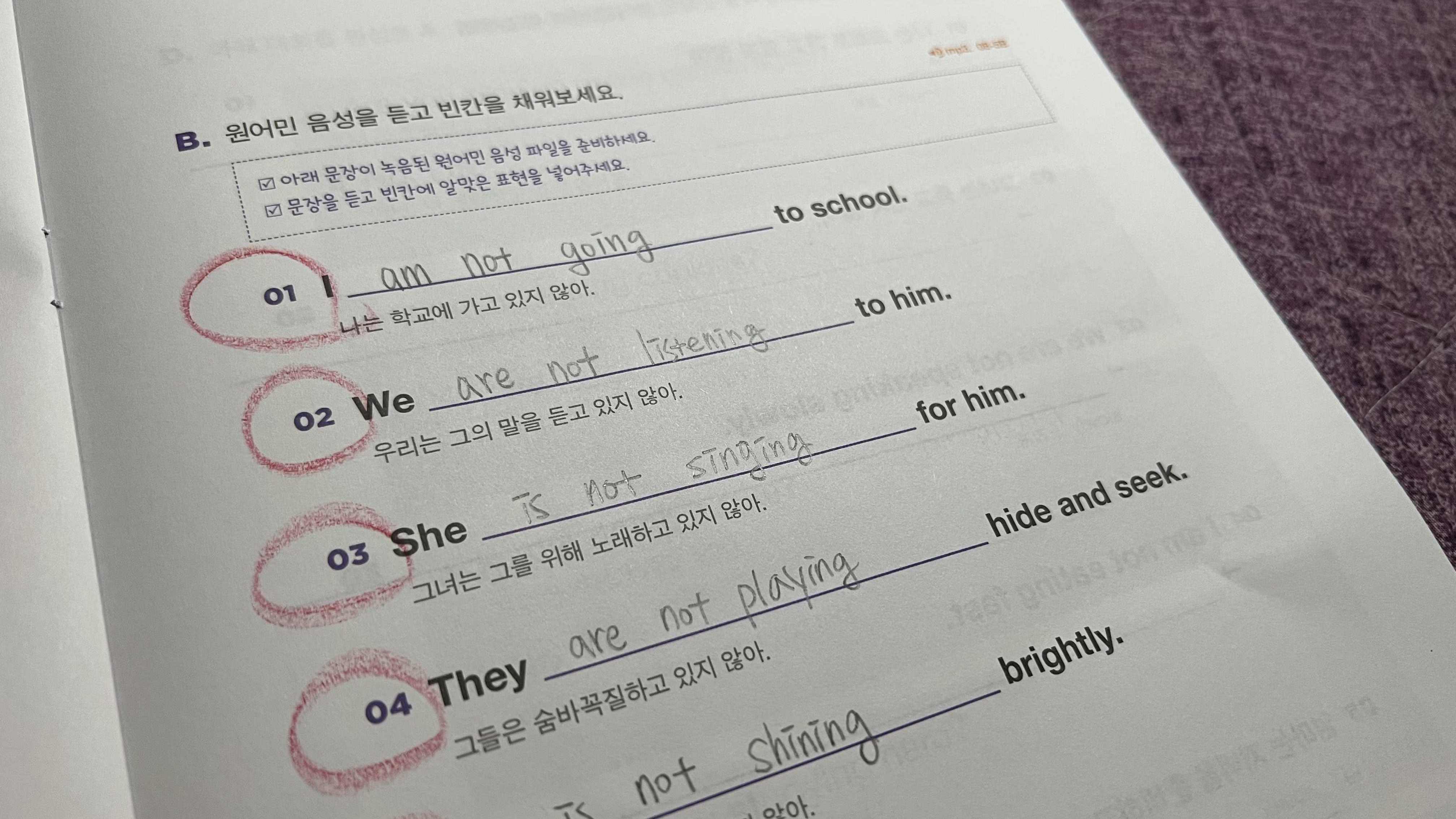 - 현재진형 부정문의 개념을 이해하고 문장을 활용할 수 있어요.