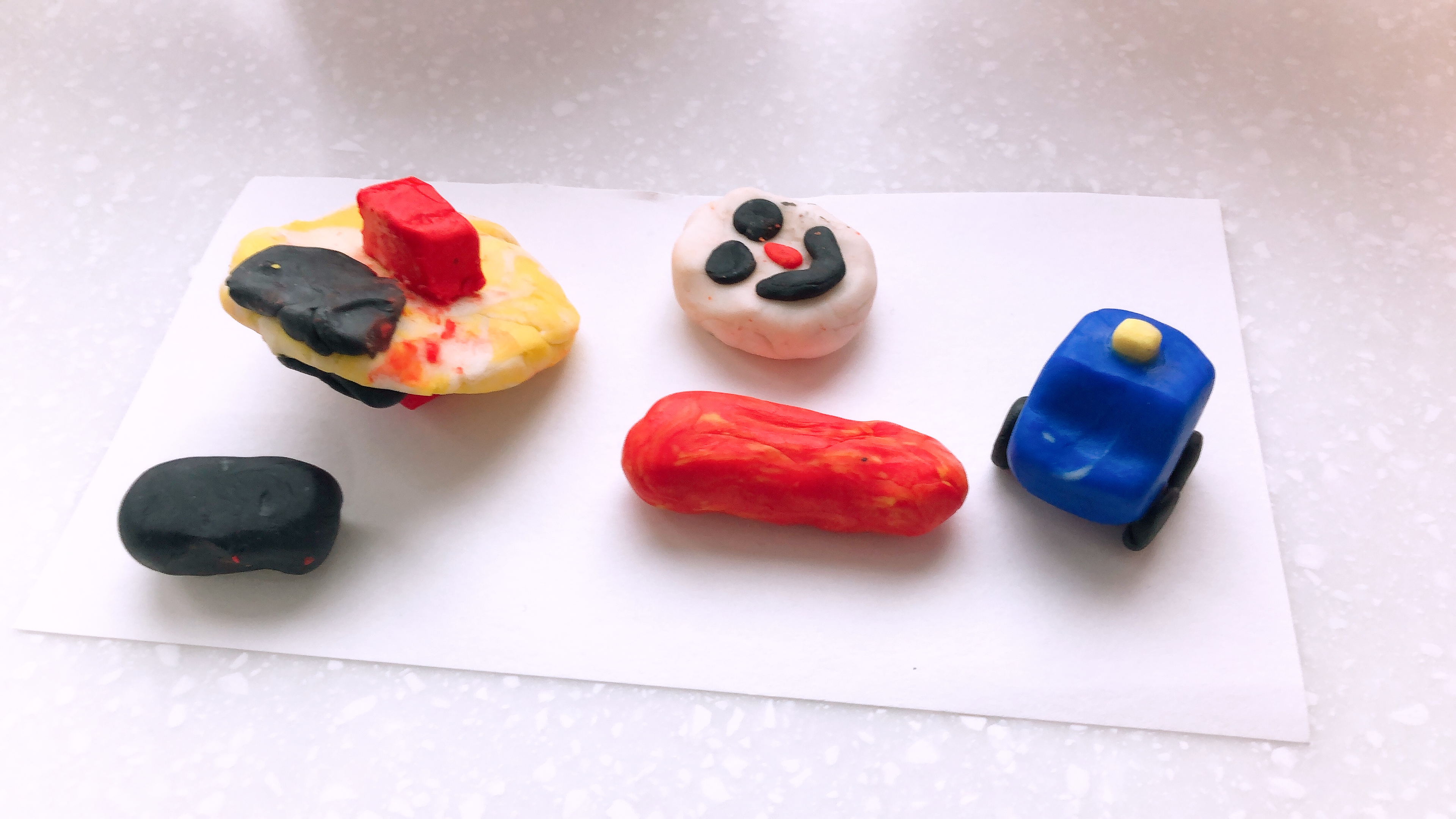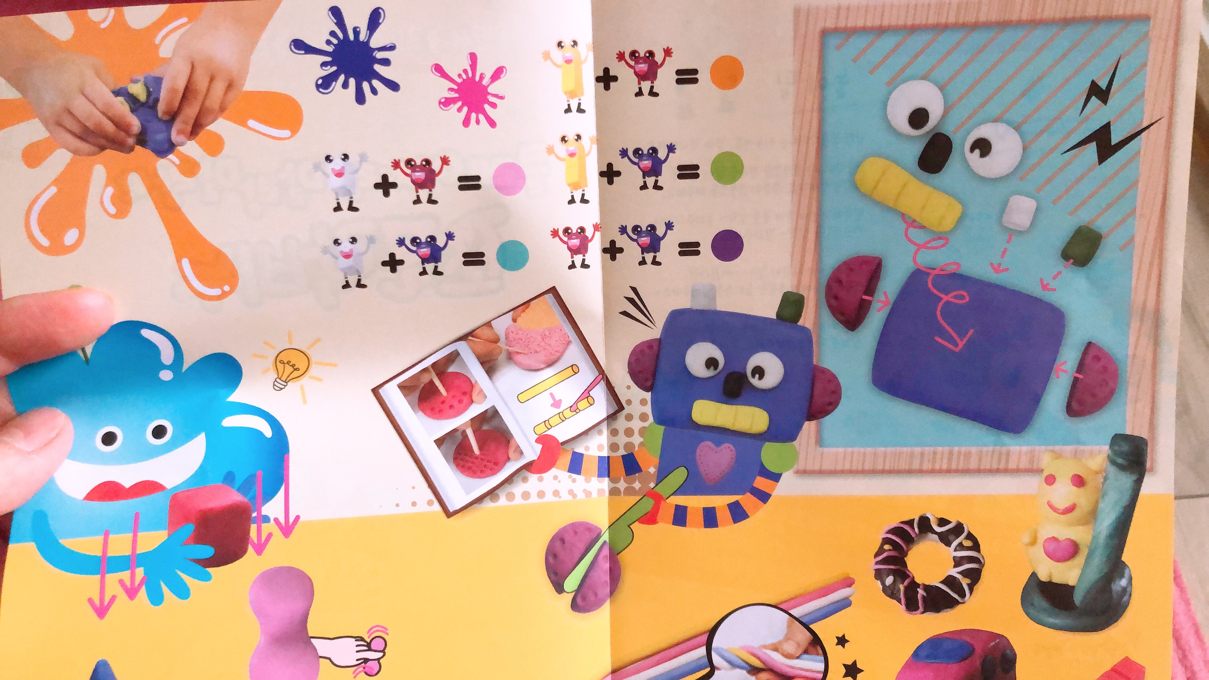 색깔이 다섯가지밖에 없지만 클레이처럼 두가지 색깔을 섞어서 다른 색도 만들 수 있다. 노랑과 파랑을 섞어 초록색을 만들고, 빨강과 파랑을 섞어 보라색을 만든다. 설명서 안쪽에 색 조합 방법도 나와 있으니 그대로 보고 따라하면 된다.