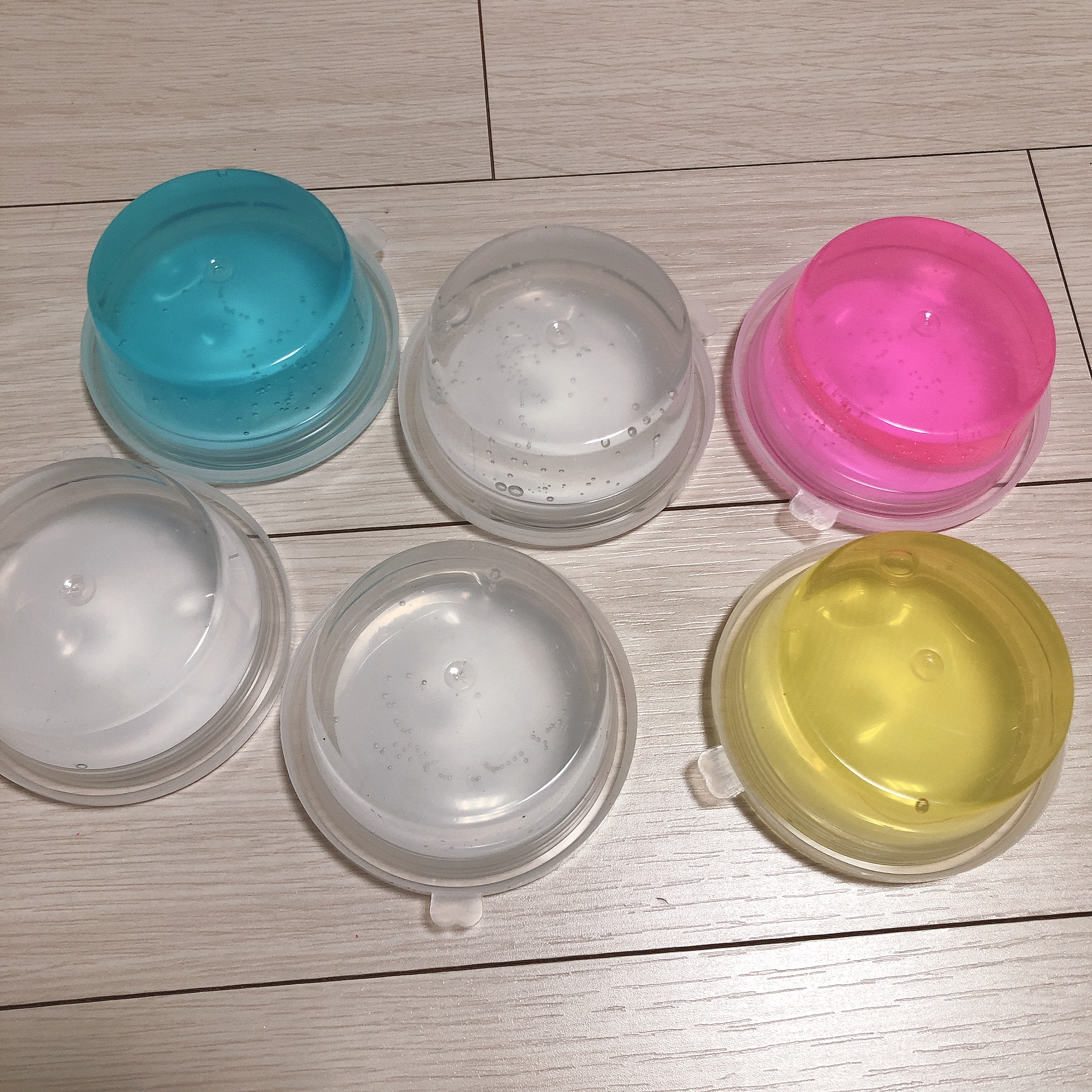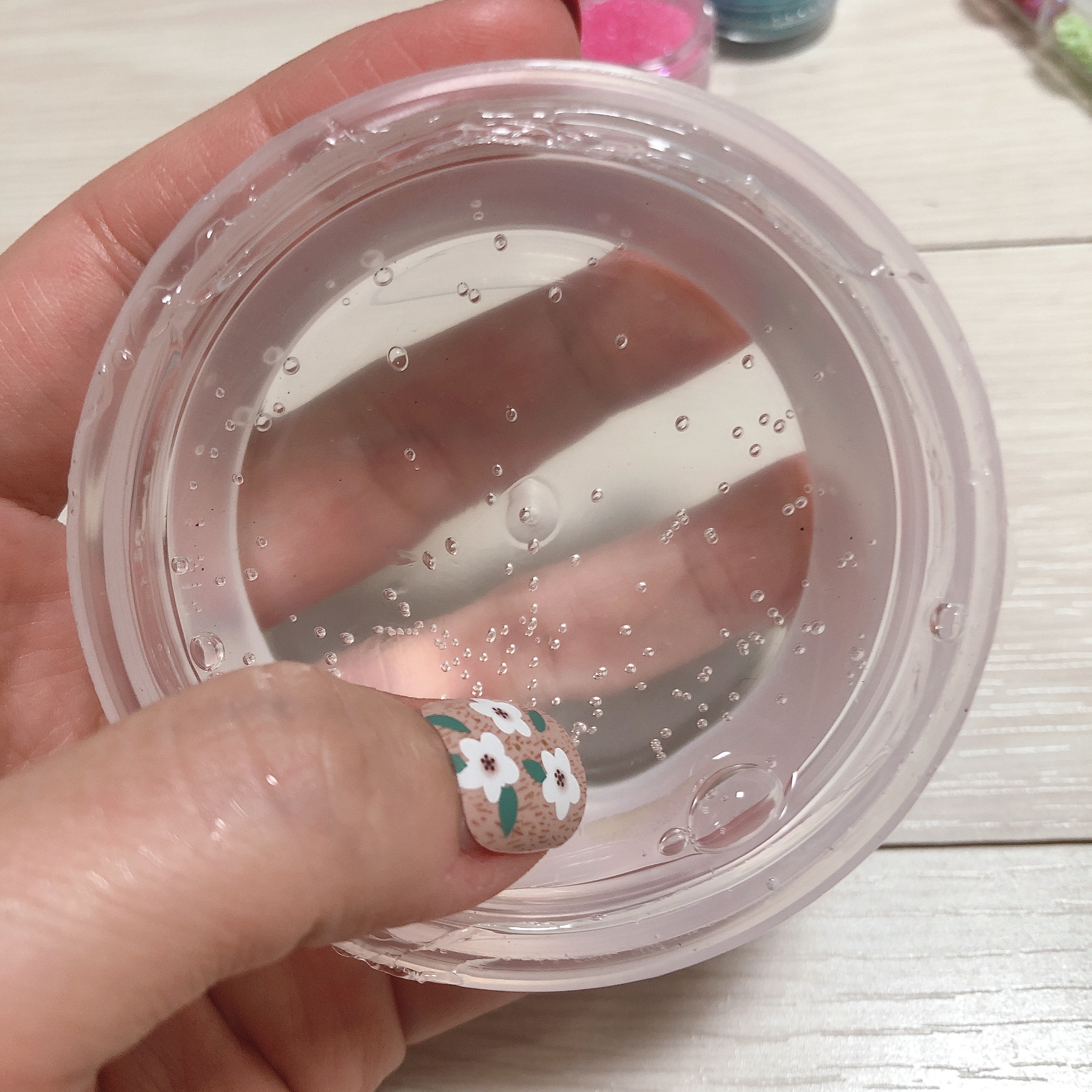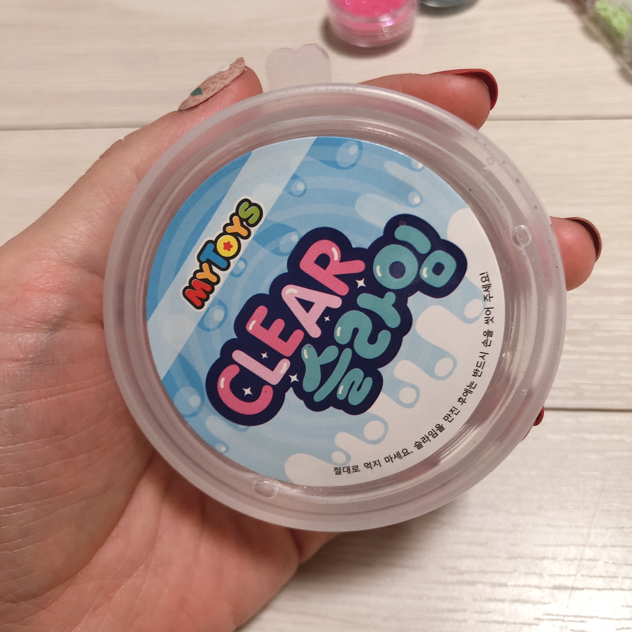 색상 슬라임은 아이들이 좋아할 것 같아서 나는 무난하게 투명한 슬라임 하나를 선택했다. 뚜껑을 여니 슬라임 액체가 통에 가득 채워져 있었다. 물같으면서도 물같지 않은... 흐물흐물하다가 탱탱해지기도 하는... (뭐라는 거야...) 신기한 촉감의 슬라임! 내가 아직까지 만져본 슬라임 중에서는 괜찮은 편인 것 같다.